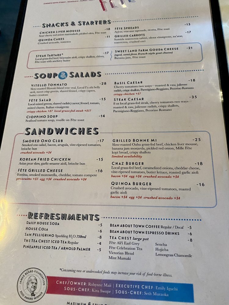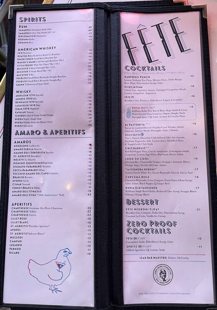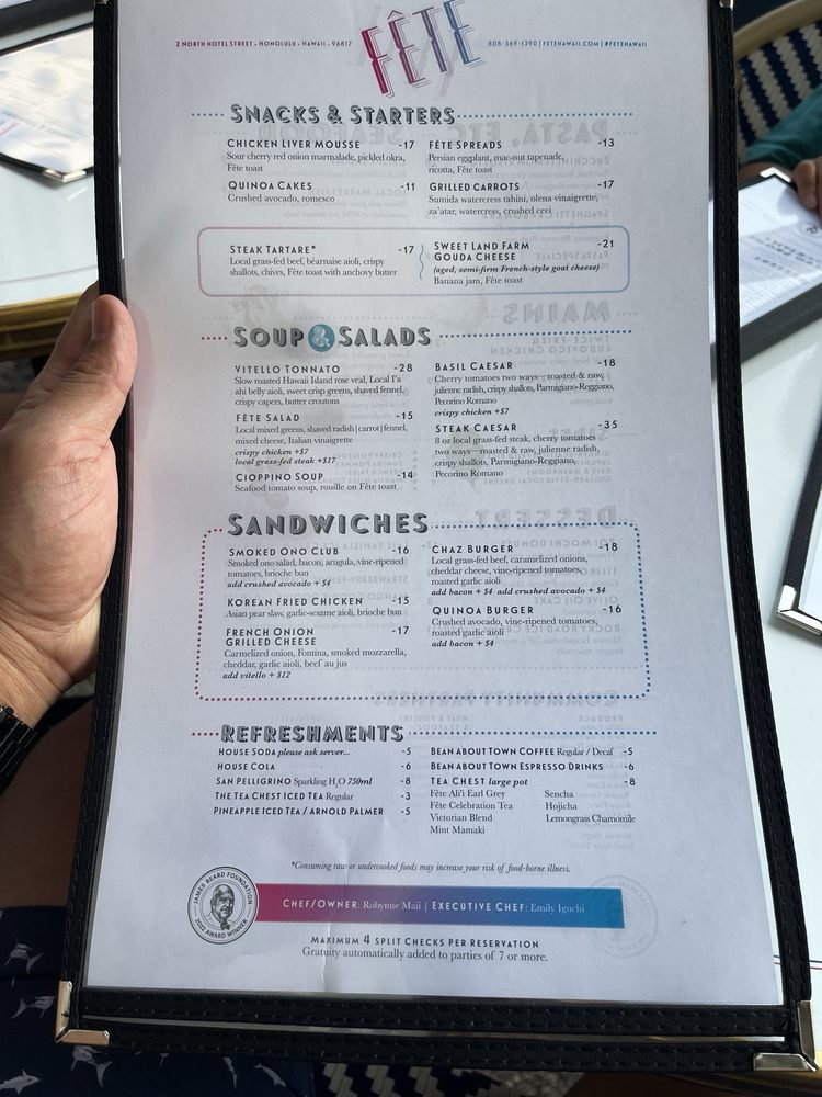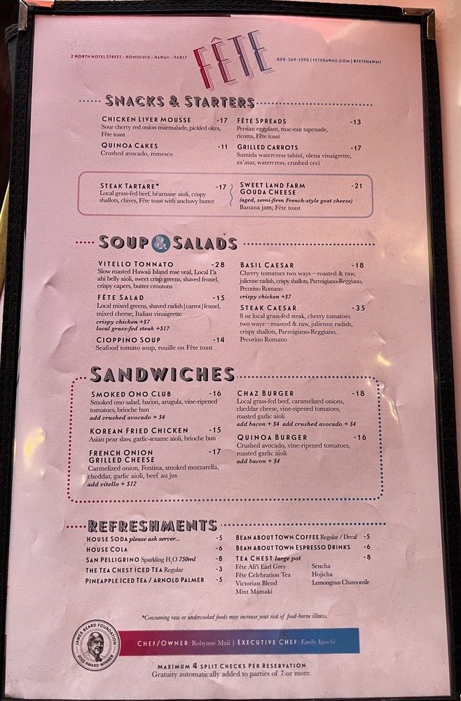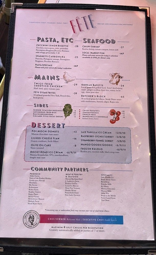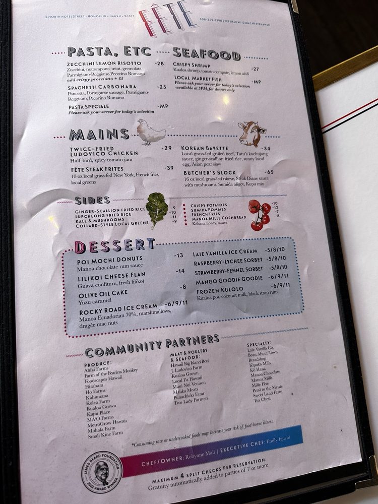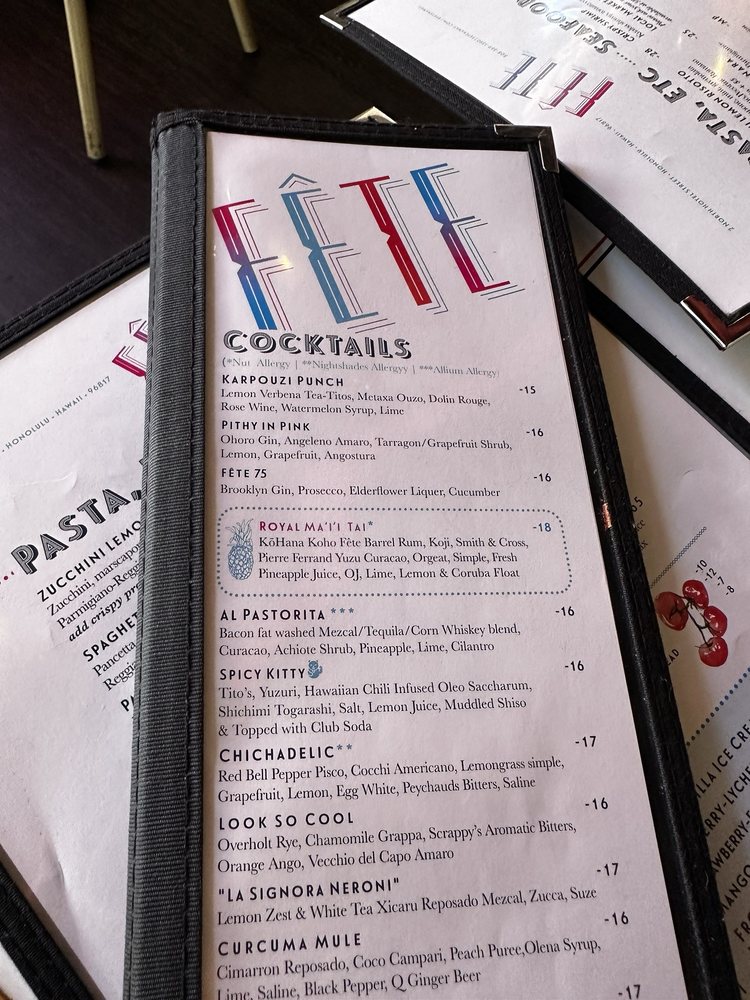 Introducing Fete Hawaii: A trendy cocktail bar offering a fusion of New American cuisine and delicious sandwiches in Honolulu. With a variety of vegan and vegetarian options, Fete Hawaii caters to all dietary preferences. The restaurant is wheelchair accessible, with QR code menus available for easy browsing. Enjoy the casual, hipster ambiance with options for outdoor seating and free Wi-Fi. From Thursday to Saturday, experience the best nights with a full bar, happy hour specials, and even pool tables for entertainment. Fete Hawaii is women-owned, eco-conscious, and dog-friendly, making it a welcoming spot for everyone. Don't miss out on the delectable dishes, friendly service, and lively atmosphere at Fete Hawaii.